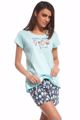 Dámské bavlněné pyžamo. Horní díl s krátkým rukávem a potiskem. Spodní vzorovaný díl šortkového střihu. Baleno v dárkové krabičce.
