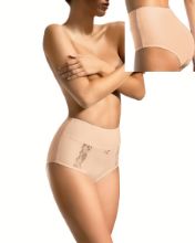 Dámské stahující kalhotky ušité z vysoce kvalitní a měkké bavlny, která zajišťuje maximální komfort při nošení. Mají zvýšenou linii pasu. V přední části jsou zdobené dvěmi krajkovými průhledy. Baleno ve vkusné krabičce.
