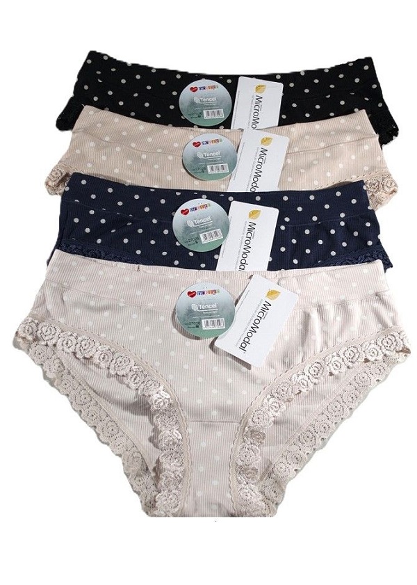 Dámské kalhotky klasického střihu, nohavičky jsou lemované krajkou. Kalhotky perfektně padnou na tělo. Baleno po 12 kusech a v mixu barev. Různé velikosti v balení (S, M, L, XL ). Baleno v transnparentním obale.