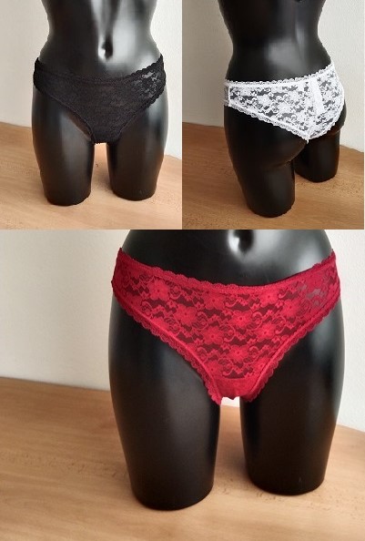 Dámské kalhotky celokrajkové. Baleno v transparentním obalu po třech kusech.