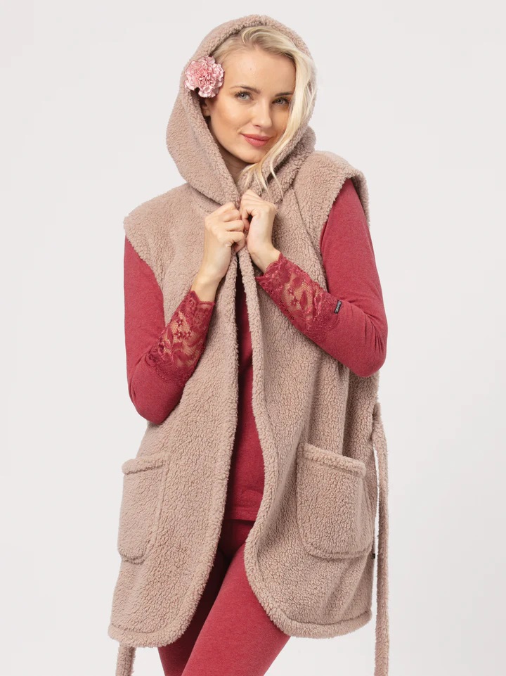 Dámská vesta s kapucí, zavazováním v pase, vesta má dvě vnější kapsy. Ideální pro chladné večery. Baleno v transparentním obalu.