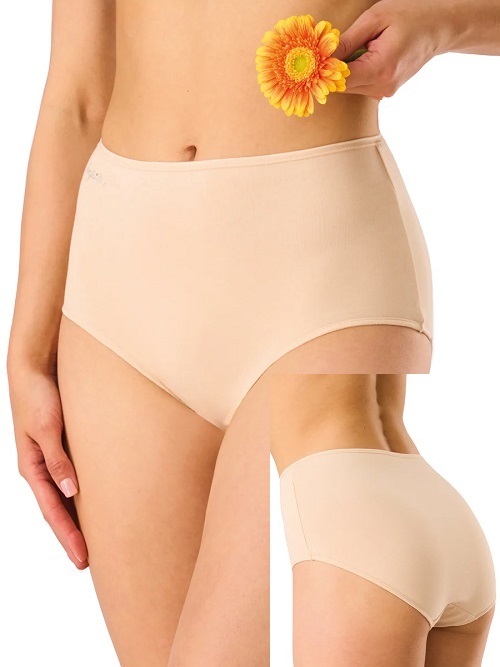 Dámské jednobarevné hladké kalhotky vyššího střihu. Baleno v krabičce.