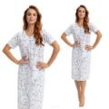 Dámská noční košile je vyrobená ze 100% bavlny a je příjemná na dotek. Košilka má vzorovaný design, krátké rukávy. Výstřih se zapínáním na knoflíčky. Délka košilky pod kolena. Baleno v transparentním obale.
