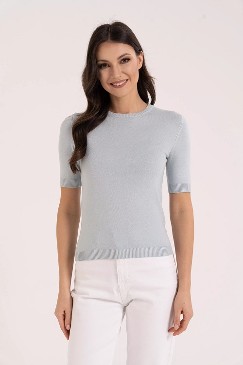 Dámský svetr s krátkým rukávem je ideální volbou pro každé roční období. Vyroben z měkké viskózové pleteniny s přidáním syntetických vláken, poskytuje výjimečné pohodlí při nošení a perfektní přizpůsobení postavě. Klasický střih s kulatým výstřihem. Baleno v transparentím obalu.