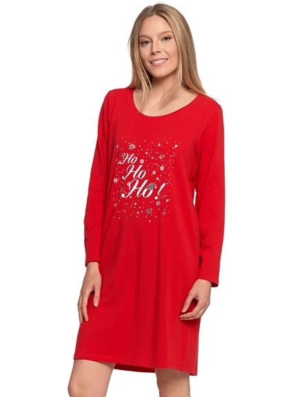 Dámská vánoční noční košilka s dlouhým rukávem, kulatým výstřihem a délkou na kolena. Baleno v transparentním obalu.