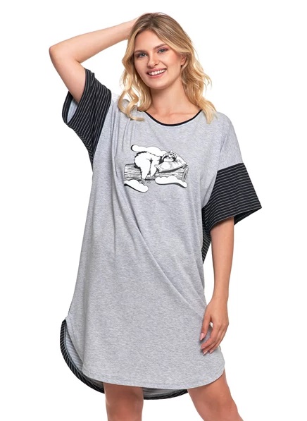 Dámská noční košile s krátkým rukávem je návrhem pro ženy, které oceňují pohodlí a styl. Vyrobeno z měkkého a na dotek příjemného materiálu, poskytuje pohodlí během spánku. Krátký rukáv umožňuje volný pohyb a elegantní design z něj dělá perfektní volbu pro každou noc. Baleno v transparentním obalu.