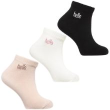 Dívčí nízké ponožky z vysoce kvalitních materiálů. Jsou měkké a příjemné na dotek. Malá příměs elastanu činí ponožky pružnými a dokonale se přizpůsobí noze. Jsou zakončeny strečovým lemem, který efektivně drží ponožky na noze a zároveň netlačí. Sada tří párů ponožek obsahuje tři různé vzory.