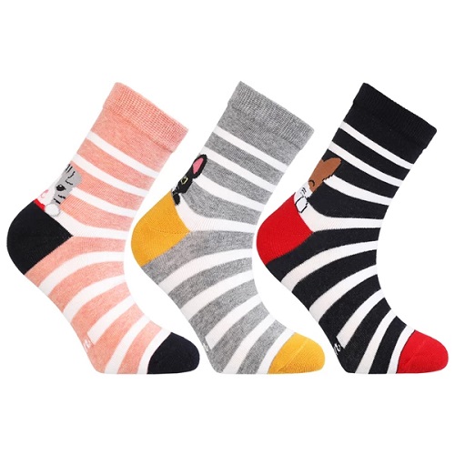 Dívčí dlouhé ponožky z vysoce kvalitních materiálů. Jsou měkké a příjemné na dotek. Malá příměs elastanu činí ponožky pružnými a dokonale se přizpůsobí noze. Jsou zakončeny strečovým lemem, který efektivně drží ponožky na noze a zároveň netlačí. Sada tří párů ponožek obsahuje tři různé vzory.