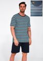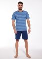 Pánské pyžamo vyrobeno z kvalitní bavlny. Horní díl s kulatým výstřihem a krátkými rukávy. Jednobarevné krátké kalhoty. Baleno ve stylové krabičce.