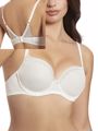 Dámská vyztužená podprsenka s kosticí navržená s elegantní krajkou a žakárovou látkou. Podprsenka má mladistvý design s výstřihem do V a krajkovými vsadkami na zádech. Podprsenka má nastavitelná ramínka. Vzadu je dvojité zapínání nad sebou s možnosti regulace obvodu ve 4 pozicích. Baleno v krabičce.