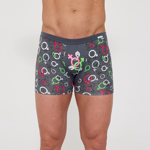 Pánské boxerky s vtipným obrázkem v pase do obšité gumy s výšivkou loga výrobce. Velice oblíbené pro svůj střih a design. Balené v krabičce.