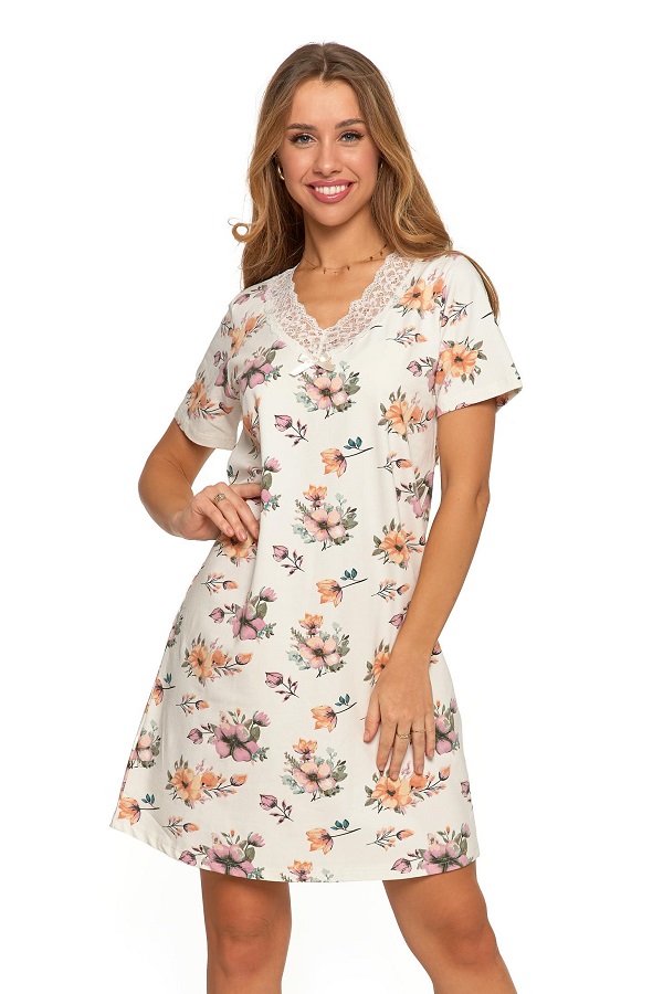Dámská noční košile z jemné bavlny. Má jemný výstřih do V, který dodává ženskost a eleganci. Krajkové zakončení výstřihu dodává styl. Tato noční košile je ideální pro letní noci, je pohodlná a prodyšná. Je perfektní volbou pro každou ženu, která ocení pohodlí. Baleno v transparentním obalu.
