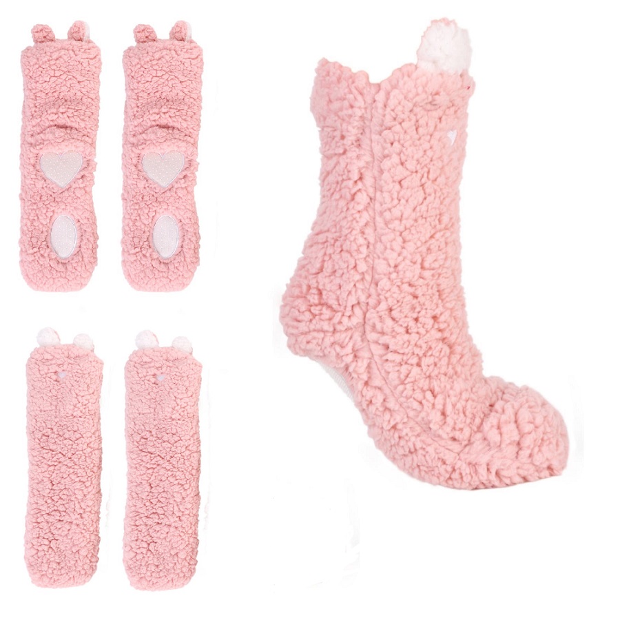 Dámské extrémně měkké ponožky ( domácí papuče). Jsou dlouhé, hřejivé a z nadýchané kožešiny! Ponožky mají na spodní straně našité aplikace, které zabraňují klouzání. Ozdobné zvířecí uši dodávají pantoflím další kouzlo.
