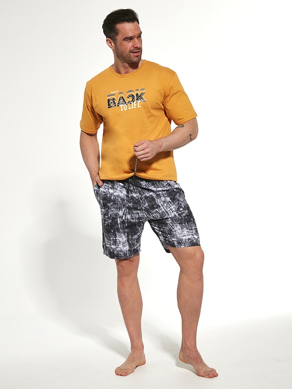 Pánské pyžamo vyrobeno z kvalitní bavlny. Horní díl s kulatým výstřihem, krátkými rukávy a náprsní kapsičkou s potiskem. Krátké kalhoty také s potiskem. Baleno ve stylové krabičce.